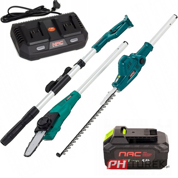 Pilarka + nożyce NAC do żywopłotu na wysięgniku zestaw gałęzi + akumulator