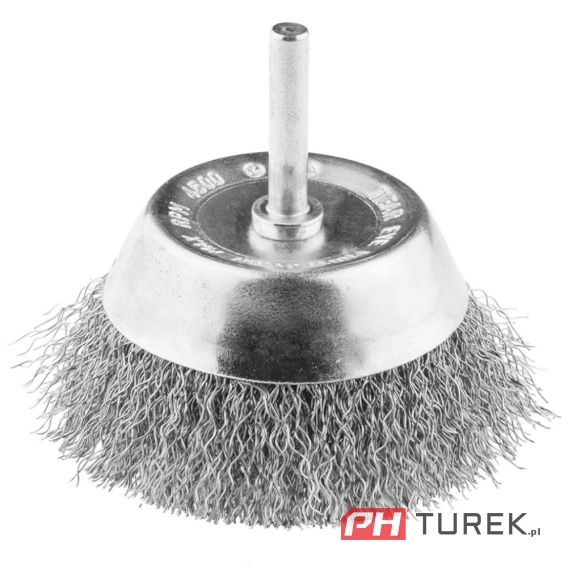 Szczotka druciana doczołowa 70 mm, drut karbowany, INOX, z trzpieniem 6 mm