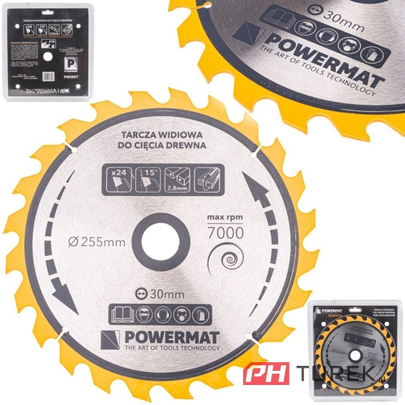 Tarcza POWERMAT służy do cięcia drewna miękkiego, wszystkich materiałów drewnopodobnych, w tym sklejek, płyt, desek, pni czy gałęzi również oraz miękkich materiałów. Przystosowana została do bardzo szybkich obrotów co gwarantuje łatwe i szybkie cięcie za jej pomocą.